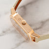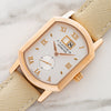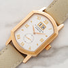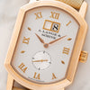 On offer is a rare large sized Grand Arkade which had a short production from from '02 to '05. This model features a silvered dial with gilt lozenge hour markers, Roman numerals, gilt edge date aperture at 12 o-clock, subsidiary dial at 6 for constant seconds and dagger hands. The case is a polished/arched rectangular shape with exhibition back and quick set button at 2 o-clock. This piece remains in fantastic pre-owned condition with a mint dial and very well-preserved case retaining deep and crisp hallmarks. It also retains its correct 18k pin buckle. For anyone looking for a strikingly beautiful and off the beaten path dress watch, the Grande Arkade hits all the right notes.