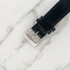 Bracelet: Original two piece strap in black with Nomos pin buckle.