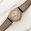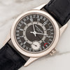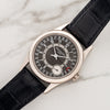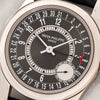 The ref. 6000 was introduced in the early 2000s and is not your average Calatrava. It features a modern looking dial aesthetic with Arabic indices and 37 X 46mm case which is ideal for medium to larger sized wrists. It houses a high-grade and self-winding micro rotor 240 PS caliber. There is a micro-pusher at 10 o-clock which is a quickset for the date function on its outer track. It was offered in various dial colors from black to grey and blue. This particular version features the grey dial which is arguably its most modern iteration. This example has remained in excellent pre-owned condition with an unpolished case displaying minimal wear and crisp hallmarks. It comes with its original warranty papers, PP folio, booklet and PP signed deployant and black gator strap.