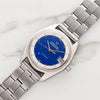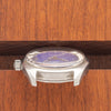 On offer is a very rare and striking looking Polerouter Date of which few examples have surfaced to market. This ref. 869119/01 is a later Genta design and evolution of the lyre lug that proceeded it. The dial this piece houses is a genuine UG dial but is believed to be a test dial as they only examples seen have been in various cases - another UG mystery yet to be discovered. Its color is a fantastic electric blue with various pigmented speckles, creating an unforgettable "starry night" effect. This piece has remained in nice vintage condition. The dial has some crazing in its lacquer but has perfectly aged tritium plots and presents well. The case remains sharp, still shows all of its markings clearly, including serial and ref. number which is tough to find in vintage UG. The crystal and crown are also correct and signed. For anyone looking for a highly unique conversation piece, this is surely amongst the scarcest and most desirable Polerouters available.
